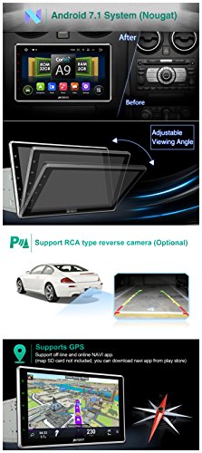 Nougat: Android 7.1 Car Radio, 10 inch 1024*600 HD Touchscreen, 2GB RAM for faster running, 32GB for more APP