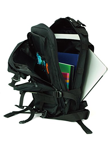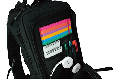 -. Feature : 2 Front Pockets. MOLLE style accessory loops on front. / Heavy-duty oversized zippers for extra durability / Multiple pockets, hooks and zip closures. / Padded Shoulder straps. / Material : 600D Polyester Dimention : 10" x 18" x 7"