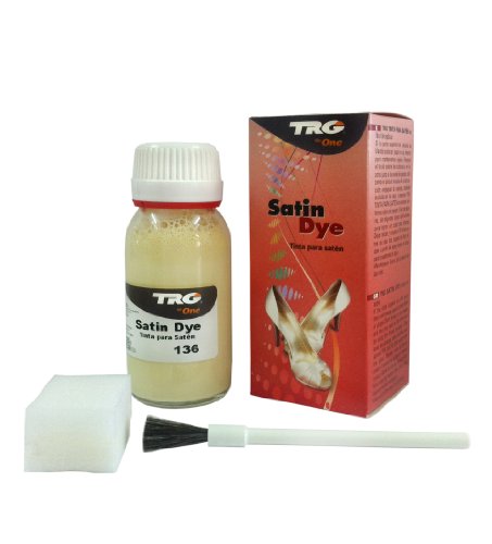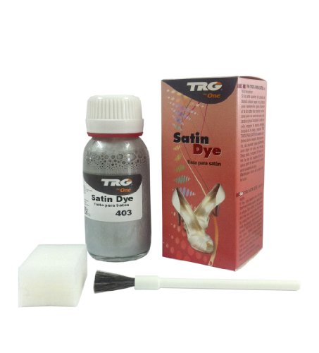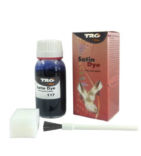 Product Description TRG SATIN DYE is easy to apply. If the shoe uppers are soft pack them with tissue paper to keep them in shape. Start dying on the seams and the area next to the shoe sole by using the brush included. Then soak the sponge, also included, and spread TRG SATIN DYE evenly over the shoe. Repeat with additional coats if needed to achieve a deeper colour. Allow to dry for 24 hours before wearing when the colour will become water resistant. The Tarrago family continues to be the world's leading innovators in Shoe Dye as demonstrated by their company, TRG's brand new product - SATIN DYE. "We were repeatedly asked to produce a Satin Dye at the 2011 Kettering Exhibition and I thought it would be straight forward - it wasn't" said Joaquim Tarrago. It took six months and several attempts but eventually they found the winning formula, and Isaac Jackman from C D Shoes in Dublin, who was the chief tester, finally gave the product his seal of approval, "We work on top designer brands like Jimmy Choo and Christian Louboutin so the satin dye had to be spot on" said Isaac "The product now gives a strong colour, preserves the satin finish, is water resistant in 24 hours and is easy to apply". TRG Satin Dye is available in nine popular wedding and fashion shades: Black, White, Navy Blue, Ivory, Silver, Cerise, Light Red, Deep Purple and Daphne Blue. 0