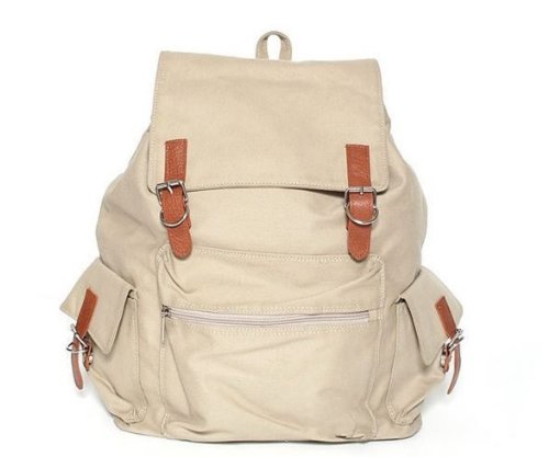 AutoM New Fashion Casual Canvas Backpack Rucksack Bag School Shoulder Bags (Beige)