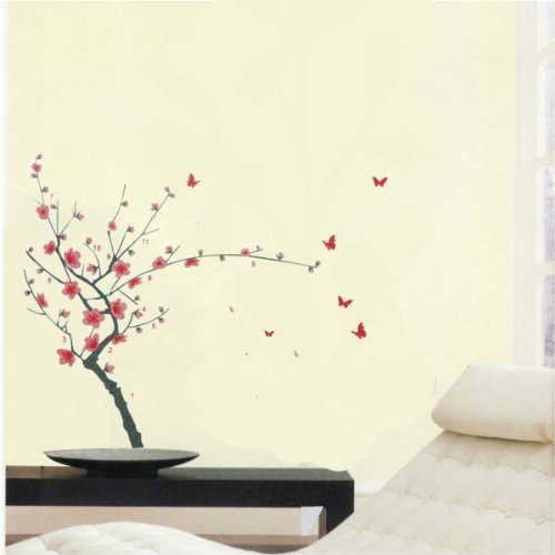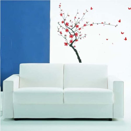 -. Title : PeelCo Large Grey and Pink Flower Orchid Tree Branch With Butterflies Buzzing Wall Decal Sticker for Home