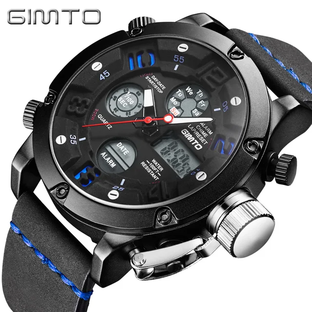 | [해외] 최고 남성 럭셔리 브랜드 GIMTO 남성 석영 시간 아날로그 LED 스포츠 시계 남성 육군 군사 손목 시계 Relogio Masculino |