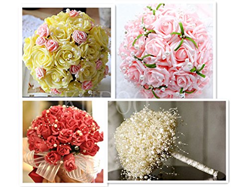 KUPOO 200feet Roll Pearls Beads DIY Party Garland Wedding Centerpieces Bridal Bouquet Crafts Decoration(8+3mm pearls- White)