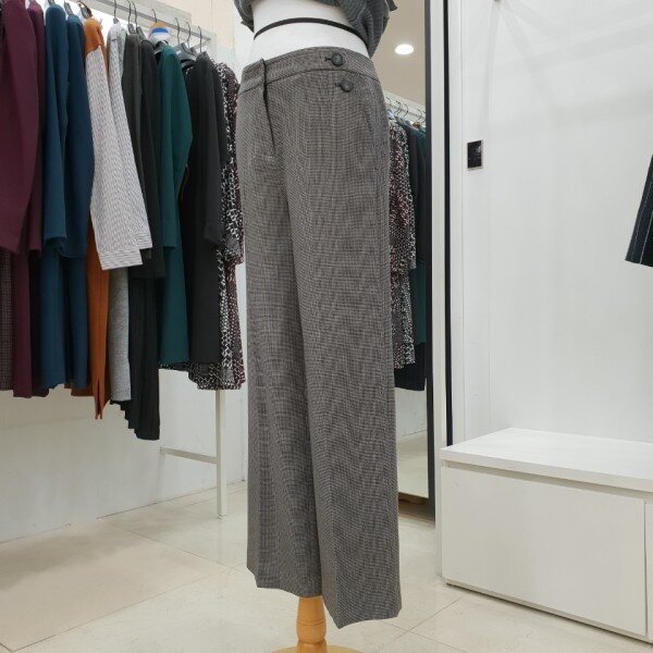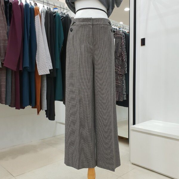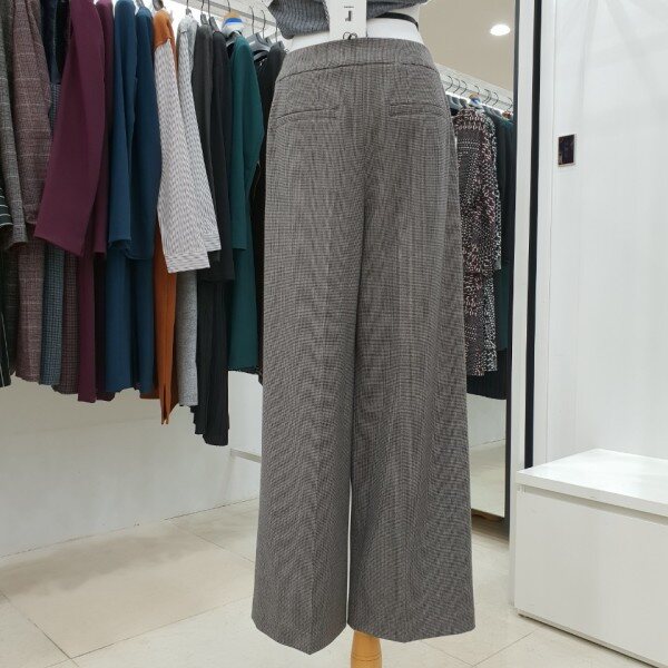 은은한 잔체크가 클래식하게 들어간 스타일쉬한 와이드 팬츠입니다.