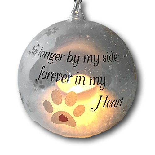 Pet Memorial Christmas Ornament - LED Light Up Glass Ball Xmas Ornament - No Longer By My Side - Loss of a Pet