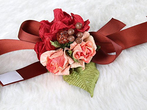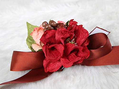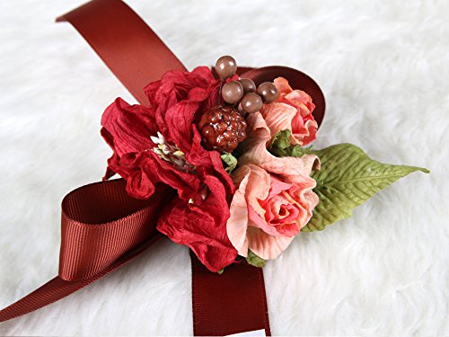 Sweet Mulberry paper bridesmaid wrist flower Decor Ceremony Party (Red)