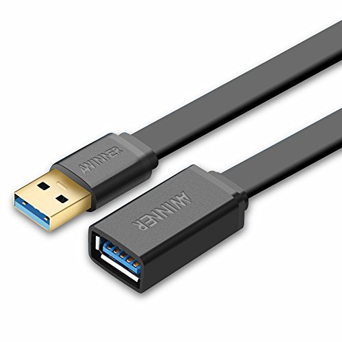 AWINNER USB 3.0 Extension Cable A Male to A Female USB Extender Cord Black -Free Lifetime Replacement Warranty (0.5M-Flat)