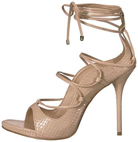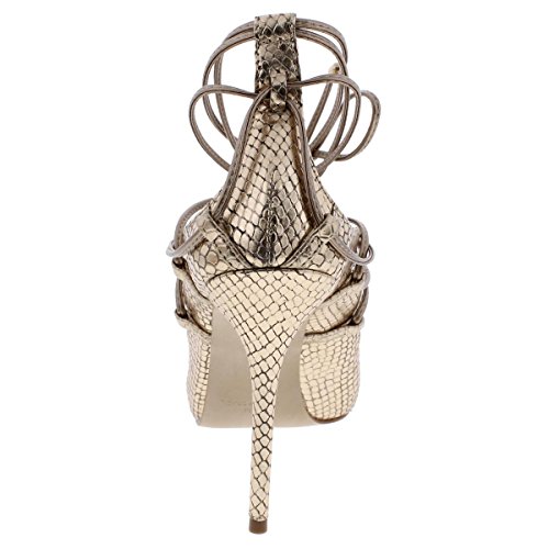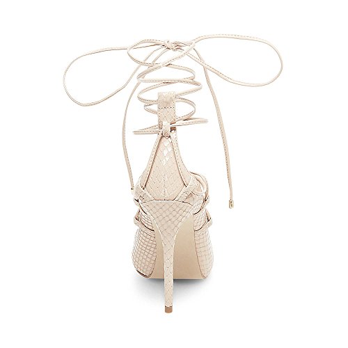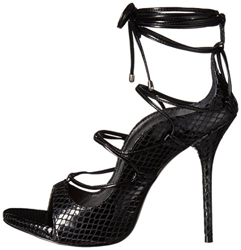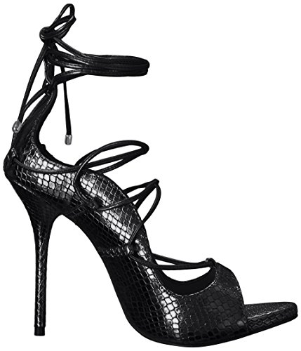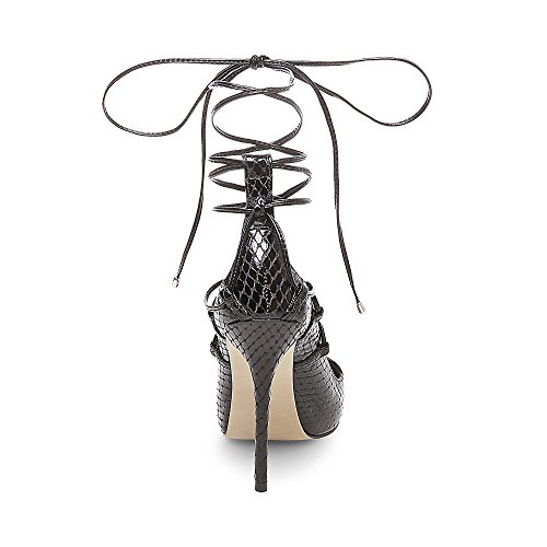 Product DescriptionTempt your feet with these lace-up heels in snakes offset by ankle wrap and a slender stiletto heel. pair with jeans or a fit and flar mini dress0