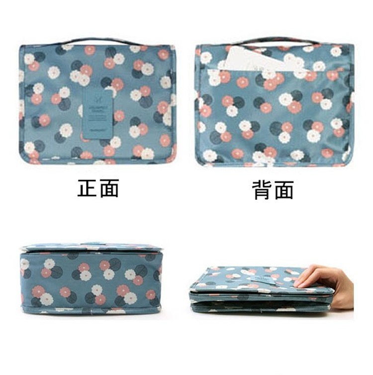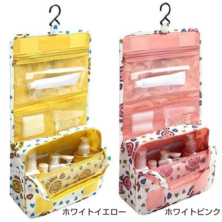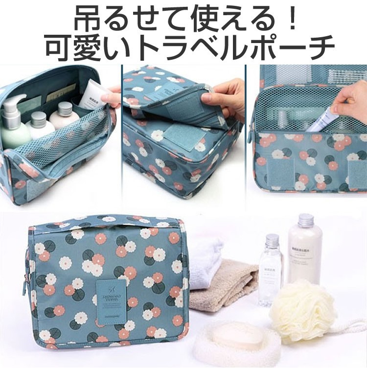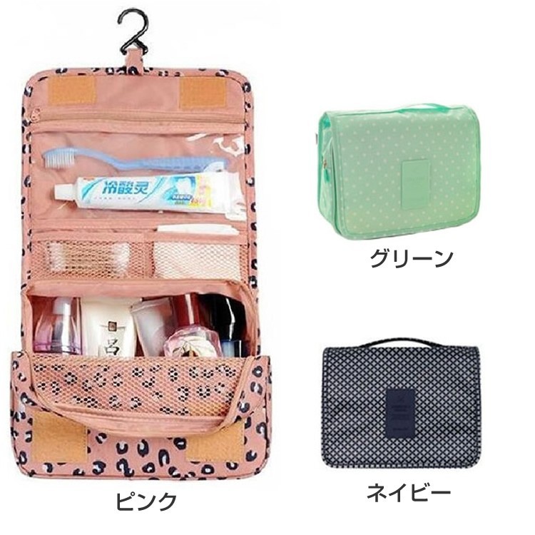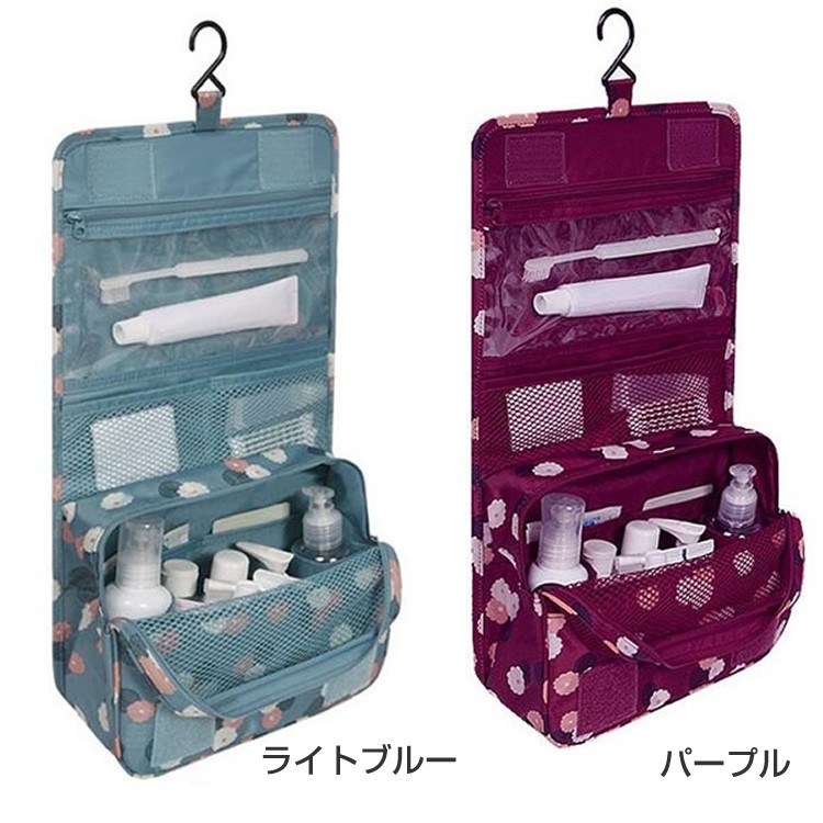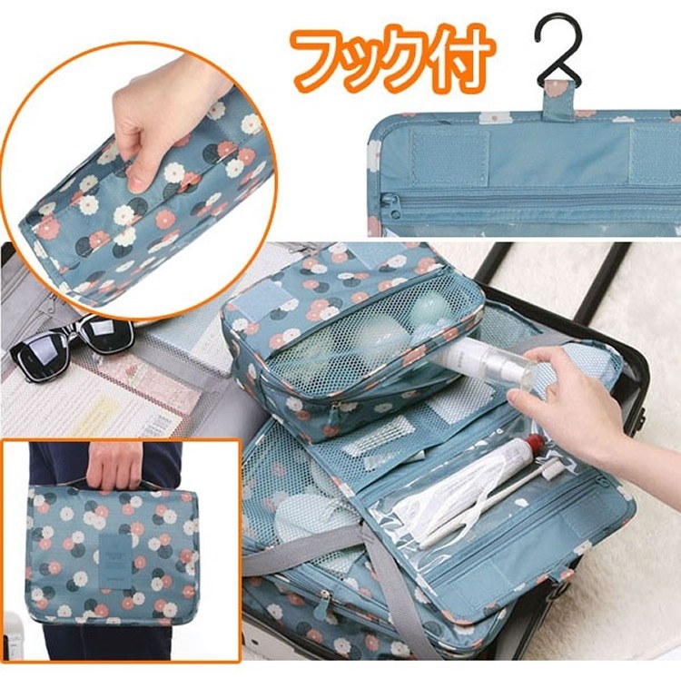 防水性も高く細かく収納していただける引っ掛けて使える便利ポーチ扉やポールなどに掛けて使える便利ポーチです。素材にポリエステルを使用し防水性に優れたポーチ。バスルームや洗面所に手軽にお持ちしていただくことができ、ホテルなどのユニットバスでもポールやレールにに引っ掛けることができ利便性の高いポーチとなっております。上部のポケットメッシュポケット、ファスナー付きポケット、前面には三つのポケットと細かく仕分けて収納していただけます。下部のポケット大きめのメッシュポケットで通気性もよくタオルやシャンプーのボトルなどの収納に最適となっております。サイズ折りたたみ時高さ約16cm 横幅約23.5cm マチ幅約8.5cm吊り下げ時全長約42cm 横幅約23.5cm マチ幅約8.5cm