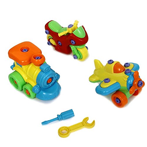 -. Binding : Toy -. Brand : dazzling toys -. EAN : 0640671363181 -. Feature : Our take-apart and assemble vehicle set is truly fun for kids aged 5 to 10. / Set contains 3 vehicles: Airplane, motorcycle, Train and Tools. / Take it apart and assemble it yourself. That's fun!! Will improve children's creativity skills. / Kids can play with the vehicles when assembled. / Super gift idea! Colors may vary. -. IsAdultProduct : 0 -. Label : dazzling toys -. Manufacturer : dazzling toys -. MPN : D304 -. PartNumber : D304 -. ProductGroup : Toy -. ProductTypeName : TOYS_AND_GAMES -. Publisher : dazzling toys -. Studio : dazzling toys -. Title : Dazzling Toys Construct a Vehicle Set Including 3 Vehicles - Airplane, motorcycle, Train and Tools. -. UPC : 640671363181