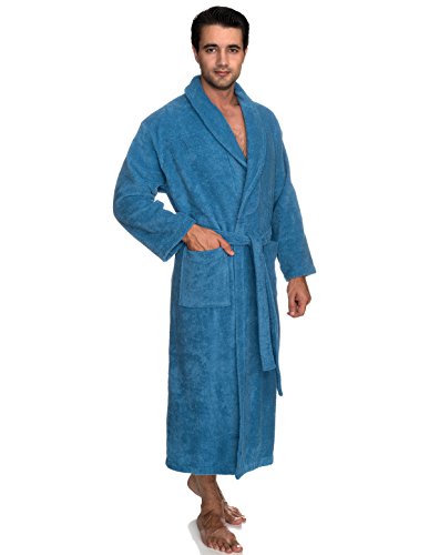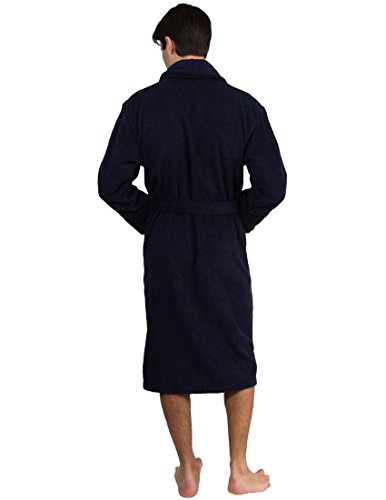 Binding : Apparel Product Description Men's Turkish Cotton terry shawl bathrobes are made of 100% absorbent Turkish Cotton. Terry cloth robes are absorbent, durable and soft. Machine washable, made in Turkey. Features: - Shawl collar robe for men. - Terry cloth bathrobe. - Three different sizes available. - Machine washable. - 100% Turkish Cotton. - Made in Turkey.