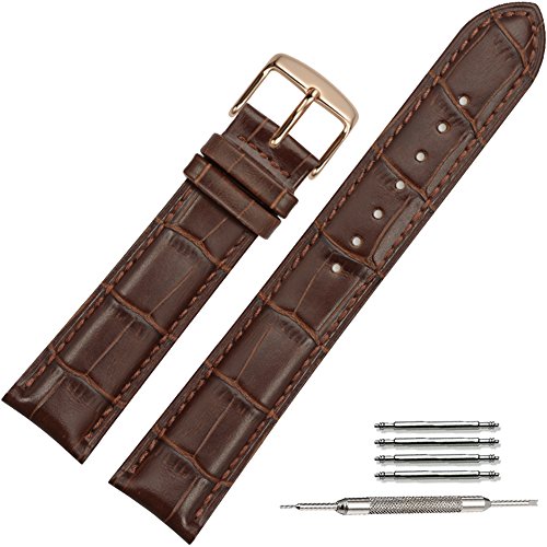 -. Title : TStrap 20mm Brown Leather Watch Bands Replacement Watch Strap 20mm Rose Gold Watch Buckle Clasp