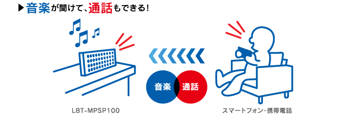 ???Bluetooth対応のスマートフォン、携帯電話の音楽がワイヤレスで楽しめます。