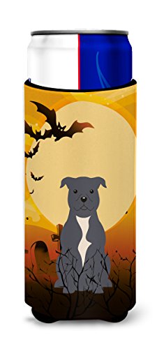Caroline's Treasures BB4312MUK Halloween Staffordshire Bull Terrier Blue Michelob Ultra Hugger for Slim Cans, Multicolor