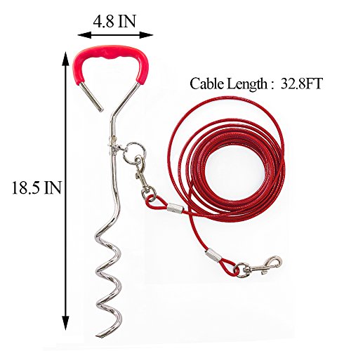 Convenient This combo includes an 18 inch spiral tie out stake and a 16 ft/30 ft steel cable up to 60 pound.