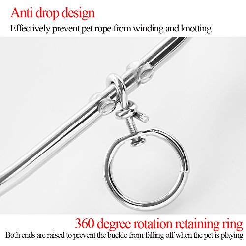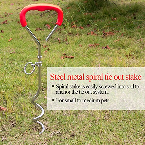 Anti-winding Your puppy will be comfortable. The stake made of 195 carbon steel can deeply screwed into the ground, with the metal cable and anti-winding rotating metal ring design, your pets can freedom to rotate 360 degrees around the stake, cable will not winding your pet.