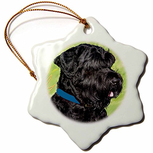 3dRose LLC orn_4411_1 Black Russian Terrier Snowflake Porcelain Hanging Ornament, 3-Inch