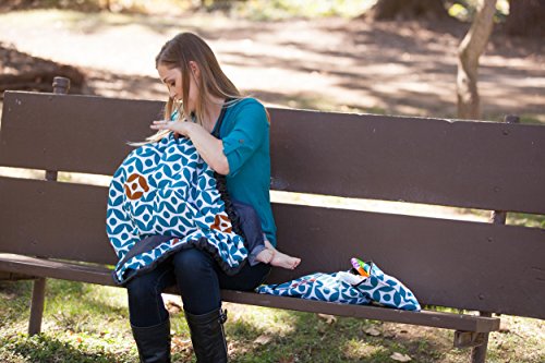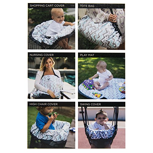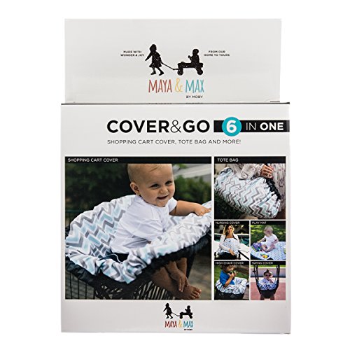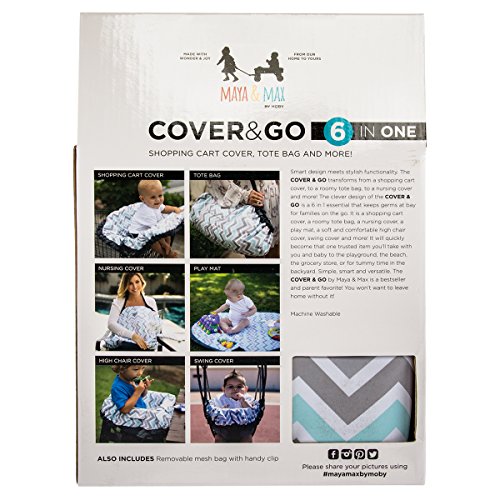 Maya & Max by Moby 6 in 1 Cover & Go: All In One Shopping Cart, High Chair, Swing + Nursing Cover for Breastfeeding, Play Mat for Tummy Time + Tote Bag - Peek - a - Blue (Peek-a-Blue)