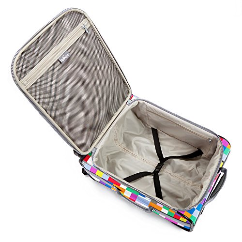 Product Description Stand out at baggage claim with our printed carry-on luggage! The Parker wheeled luggage is an ideal travel companion tailored with multiple compartments that are designed to protect all of your travel essentials. Four spinning wheels make travel to and from the airport a breeze, while padded top and side carry handles make it easy to throw into the overhead cabin space. Dimensions: 14"L x 22"H x 9"D Weight: 6.24 lbs 0