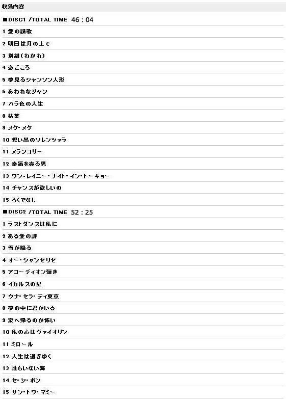 昭和を代表する「シャンソン」の女王として君臨した越路吹雪の「愛の讃歌」他、代表曲を収録した珠玉の永久保存盤。