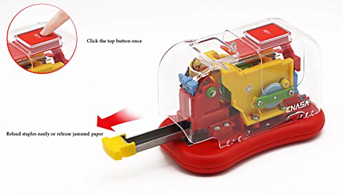 4) Easy to Use - Click the top button one time to reload staples easily, and then put the paper into the automatic stapler. This increases efficiency and saves your time and energy