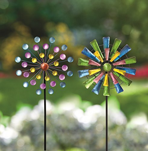 Bits and Pieces - Set of Two (2) Dots and Paddle Mini Wind Spinners - Decorative Kinetic Wind Mills - Unique Outdoor Lawn and Garden Décor, Lawn Ornaments