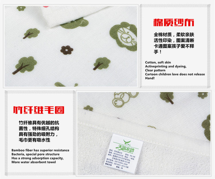 2条装纯棉纱布竹纤维毛巾儿童毛巾面巾宝宝洗脸吸水大毛巾美容巾
