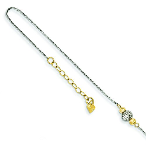 14k White Gold Ropa Two-tone Diamond-cut Bead With 1inch Ext Anklet - 9 Inch - .9 Grams in 14k White Gold - JewelryWeb Style: QTA213049W - FREE gift-ready jewelry box