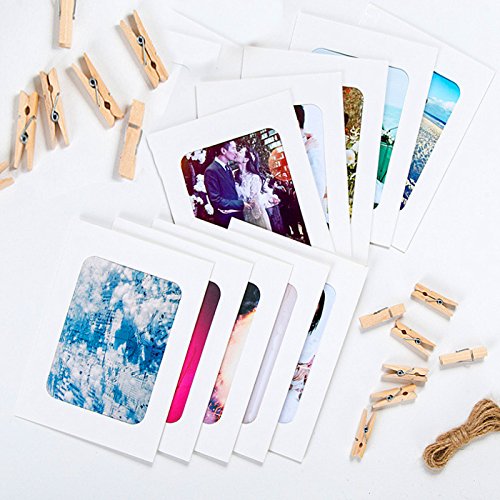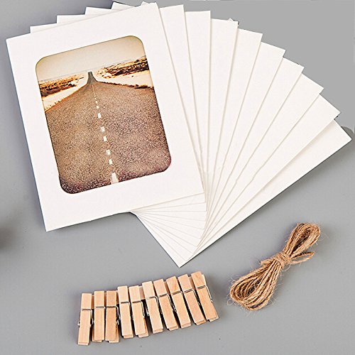 10pcs Handmade Paper Photo Frames 4x6 DIY Collage for Wall Hanging Decorative with 10 Pieces Mini Wooden Clips