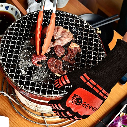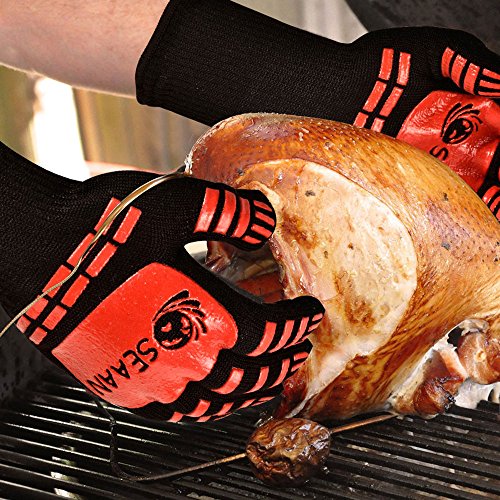 - SEAAN Premium Oven Grill Gloves are guaranteed to withstand extreme temperatures up to 932ºF (500ºC).A true innovation in heat protection for the oven, stove top, and outdoor grill. Nomex and Kevlar fibers when they combined they slow the rise of temperatures when handling hot items. Perfect for grilling, smoking, cooking, baking, or handling super hot items in the kitchen and outdoors.