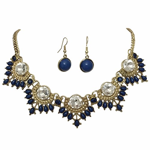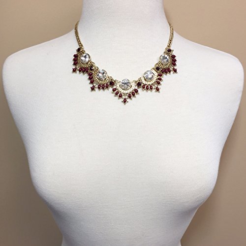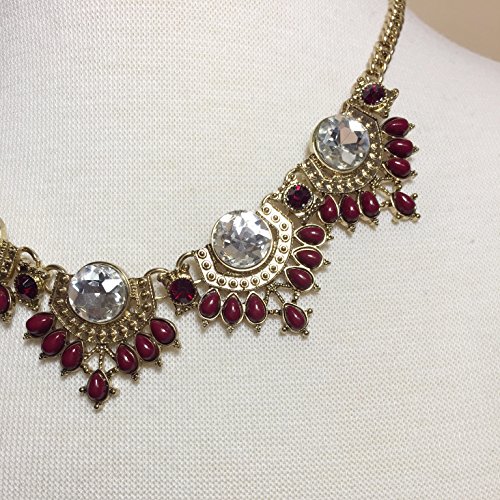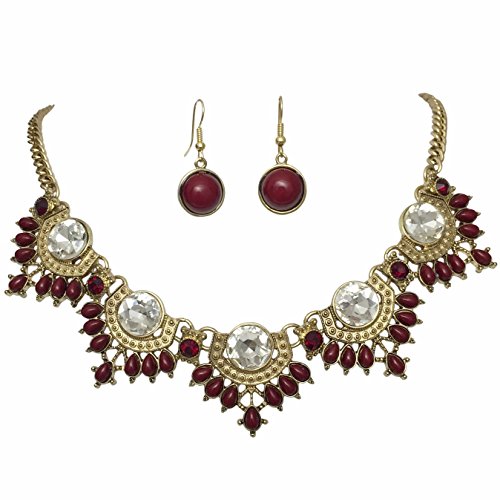 Bohemian Fan Statement Gold Tone Boutique Bib Bubble Necklace Earrings Set BOHO (RED)