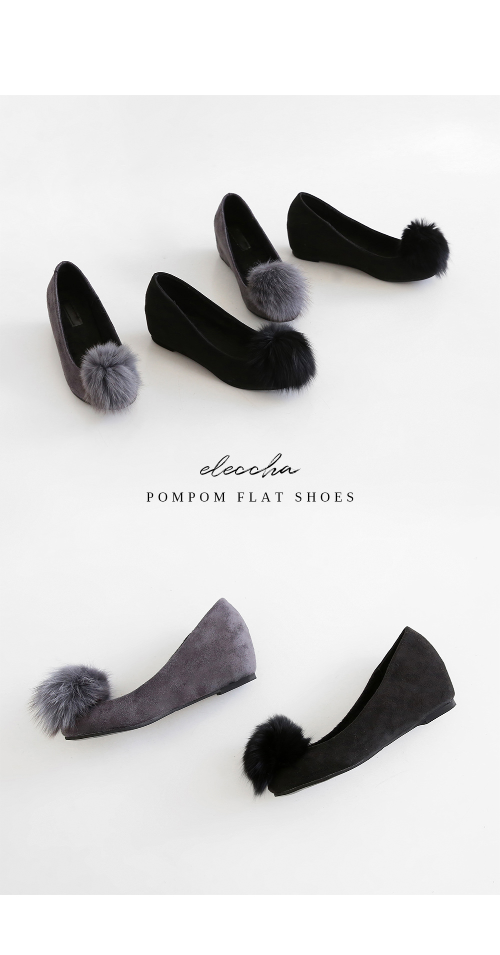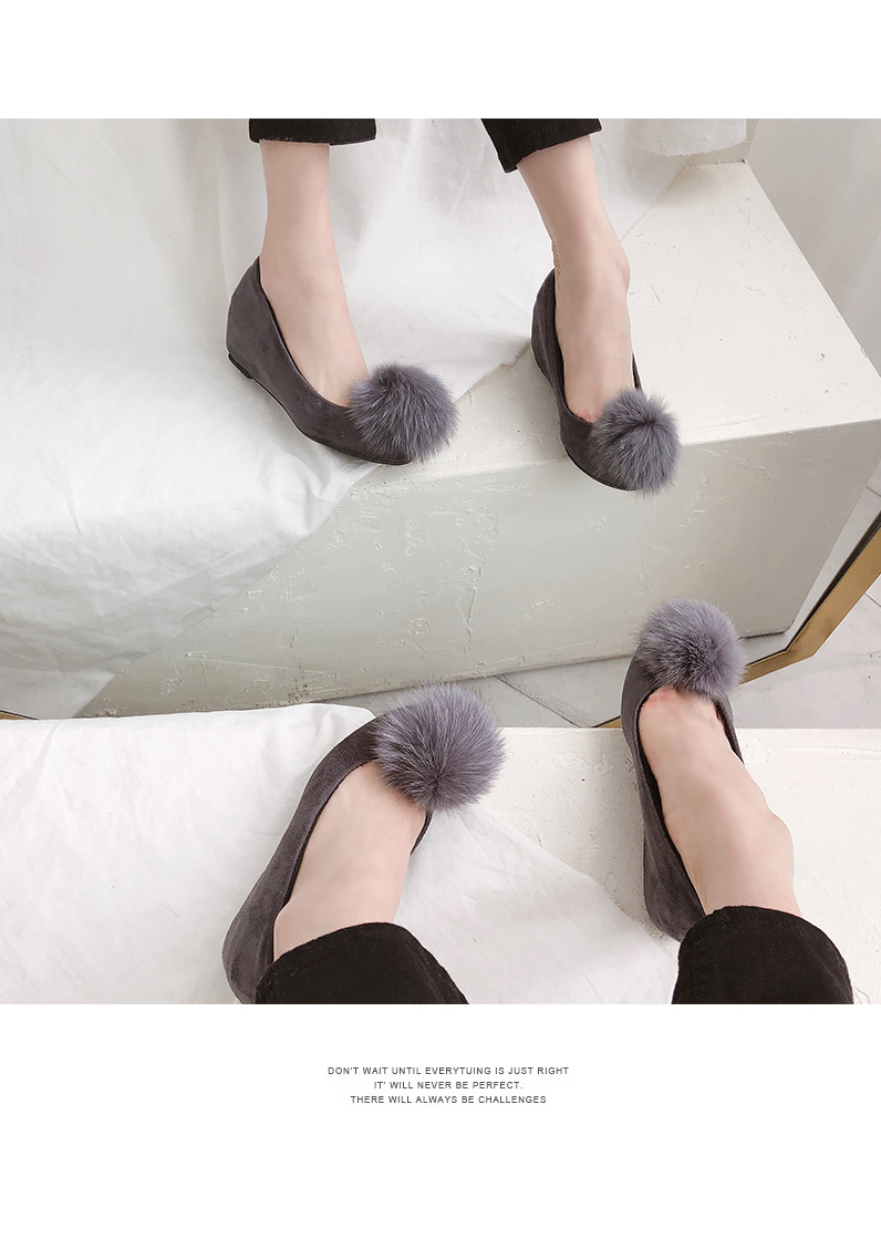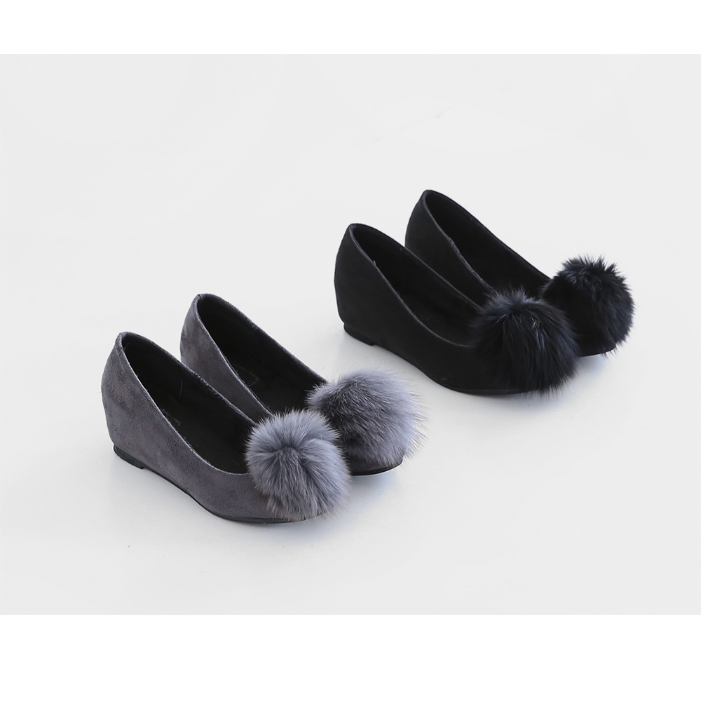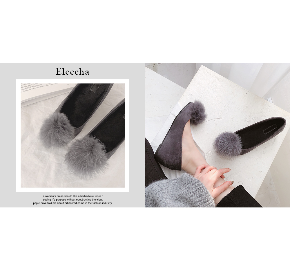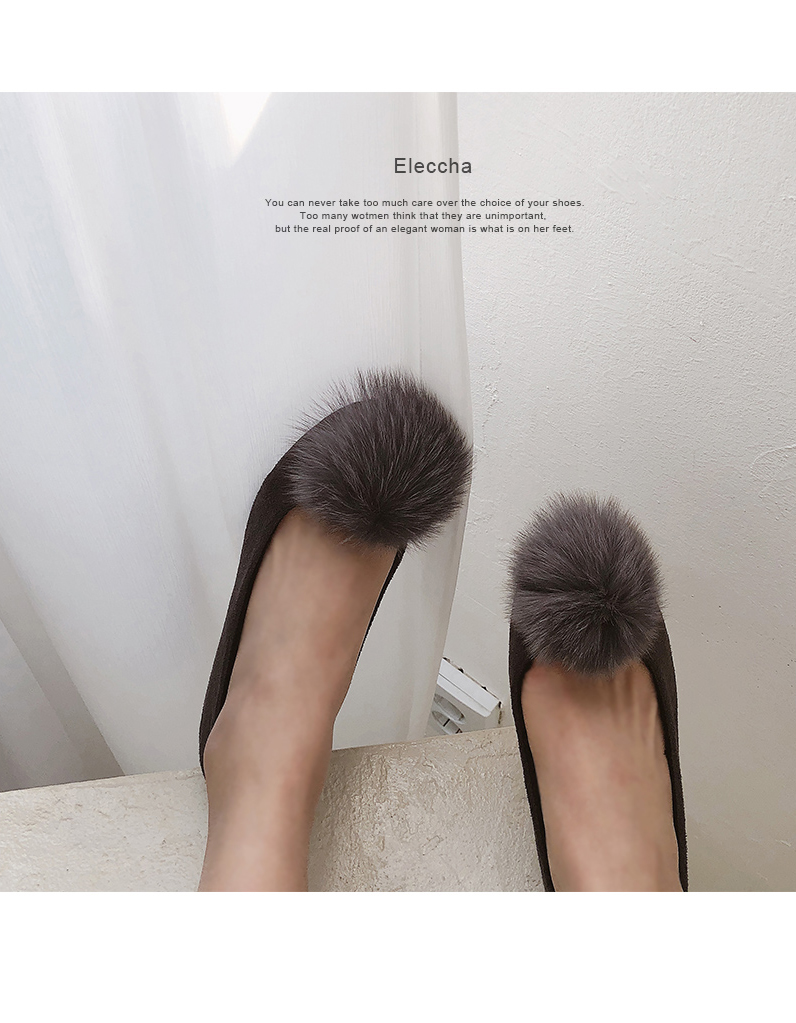 Suede pompom flat shoes