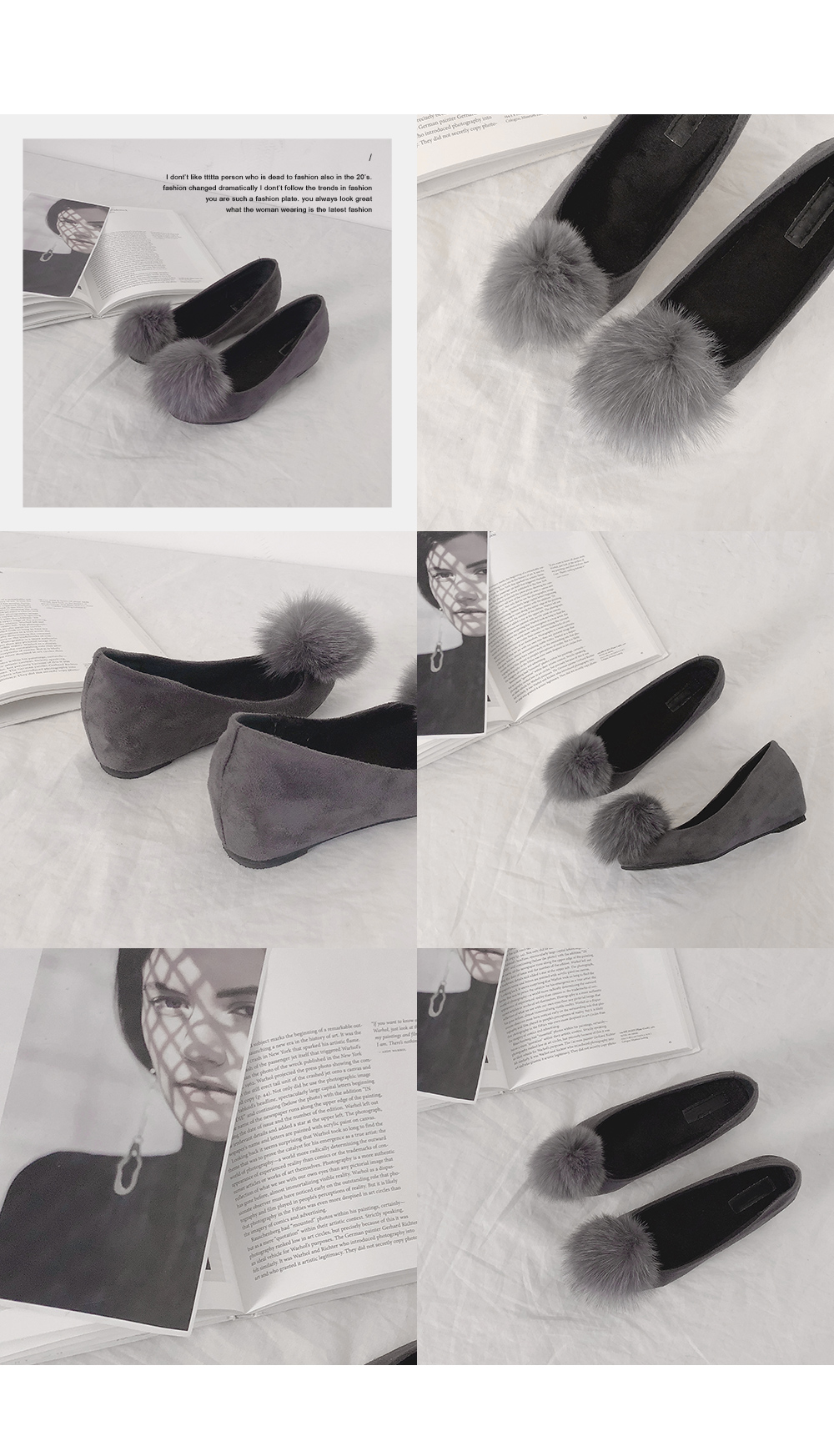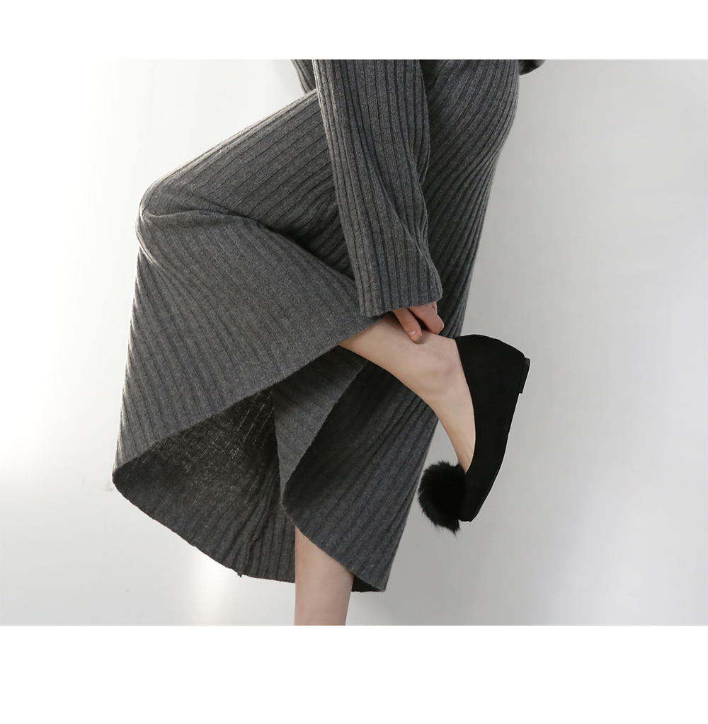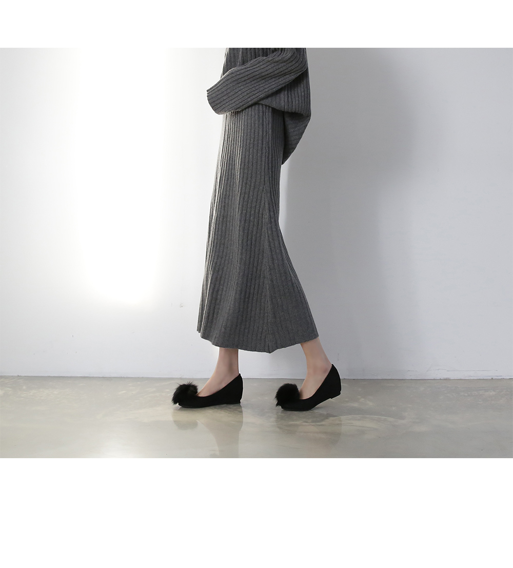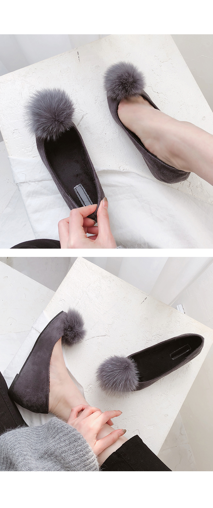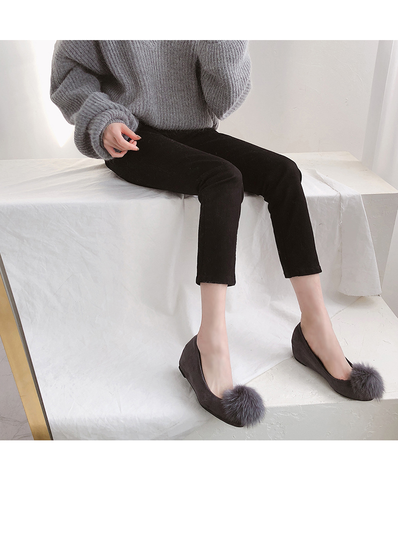 Suede pompom flat shoes