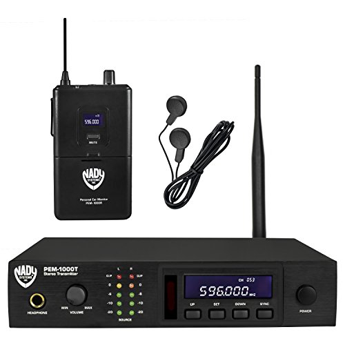 -. Brand : Nady -. EAN : 0634343289770 -. Feature : Ultra-compact design with 100 selectable UHF frequencies for interference-free performance (Up to 8 systems can operate simultaneously) and an operating range of 300-feet. Ideal for both small and large venues. / Operates at an uninterrupted frequency range which provides stability and maximum compatibility with other close-range UHF/VHF wireless systems. / Compatible with professional in-ear monitor earbuds and consumer headphones with 3.5mm jack / Any number of PEM-1000 receivers can be used with a single PEM-1000 transmitter. Up to eight PEM-1000 systems can be used in close proximity for maximum audio referencing and dynamic mix control -. IsAutographed : 0 -. IsMemorabilia : 0 -. Label : Nady -. Manufacturer : Nady -. MPN : LYSB01FSYKBT2-ELECTRNCS -. PackageQuantity : 1 -. PartNumber : LYSB01FSYKBT2-ELECTRNCS -. ProductGroup : Musical Instruments -. ProductTypeName : SOUND_AND_RECORDING_EQUIPMENT -. Publisher : Nady -. Studio : Nady -. Title : Nady PEM-1000 UHF 100-Channel Wireless Professional In-Ear Monitor System with Earbud Headphones -. UPC : 634343289770