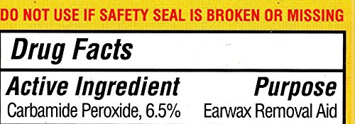 Product DescriptionSize 0.5 oz per bottle. Ear Drops Earwax Removal Aid Carbamide Peroxide 6.5% .0