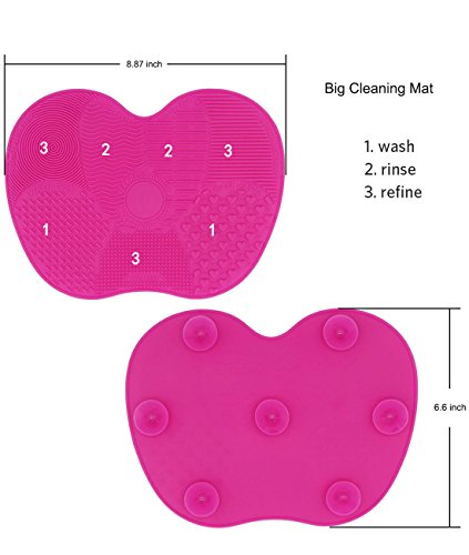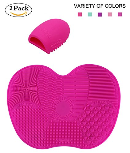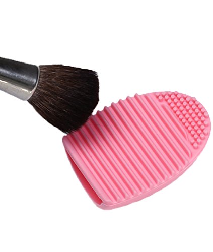 Makeup Brush Cleaner Cleaning Mat+ Silicone Egg Brush Portable Washing Tool Scrubber with Suction Cup (Rose red)