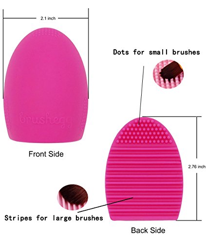 The professional eye makeup brush cleaner size is 23*17*4cm(9*6.7*1.5inch)and the egg cleaning brush is 7.5*4.5cm(2.95*1.7inch),which is perfect for two fingers in it to hold the brush egg easily. The tiny granules are used for cleaning small brushes and the stripes are designed for bigger makeup brushes.