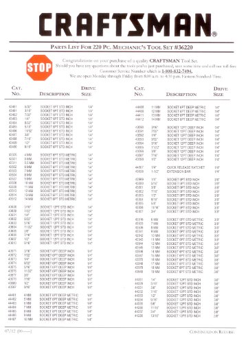 Craftsman 220 pc. Mechanics Tool Set with Case, # 36220 (Newest Version)