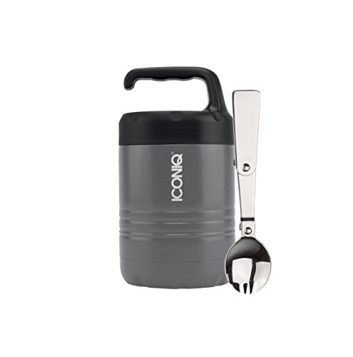ICONIQ Qore Stackable Stainless Steel Insulated Food Jar with Fold-Out Spork (10 ounce | Graphite)