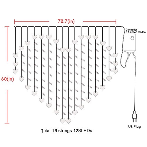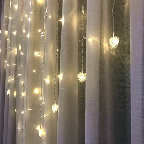 Fefelightup Heart-Shaped Curtain lights LED String Lights Decorative Lights Stunning Romantic(Warm White))