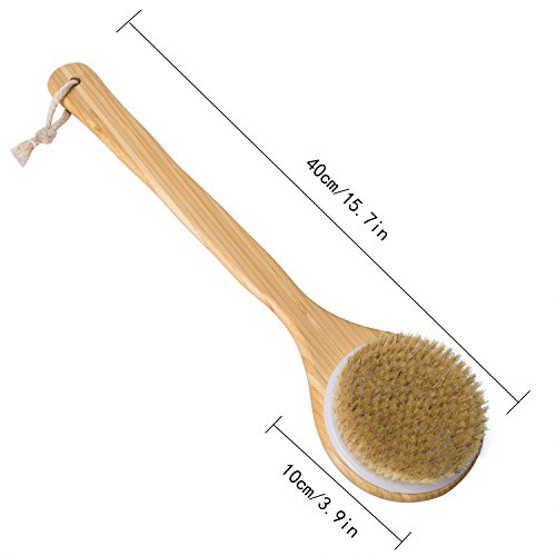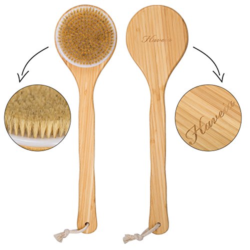 HIGH QUALITY--Haveia's brush handle is made of smooth polished wood. All 100% Natural Bristles are of the finest grade which are more than 5cm hair that grow above the neck and back of the pig. They are tough and flexible, not easily deformed, resistant to moisture, free from hot and cold water and will not scratch skin.can be used for dry skin too.boost circulation and promote skin health and glows.