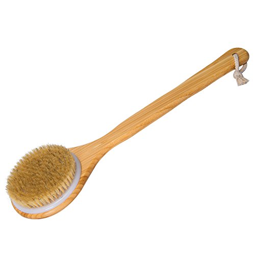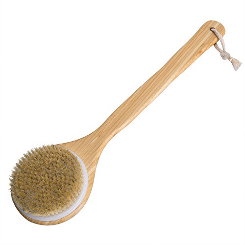 Haveia Bath Body Brush Boar Bristles Exfoliating Body Massager with Long Wooden Handle for Dry Brushing and Shower