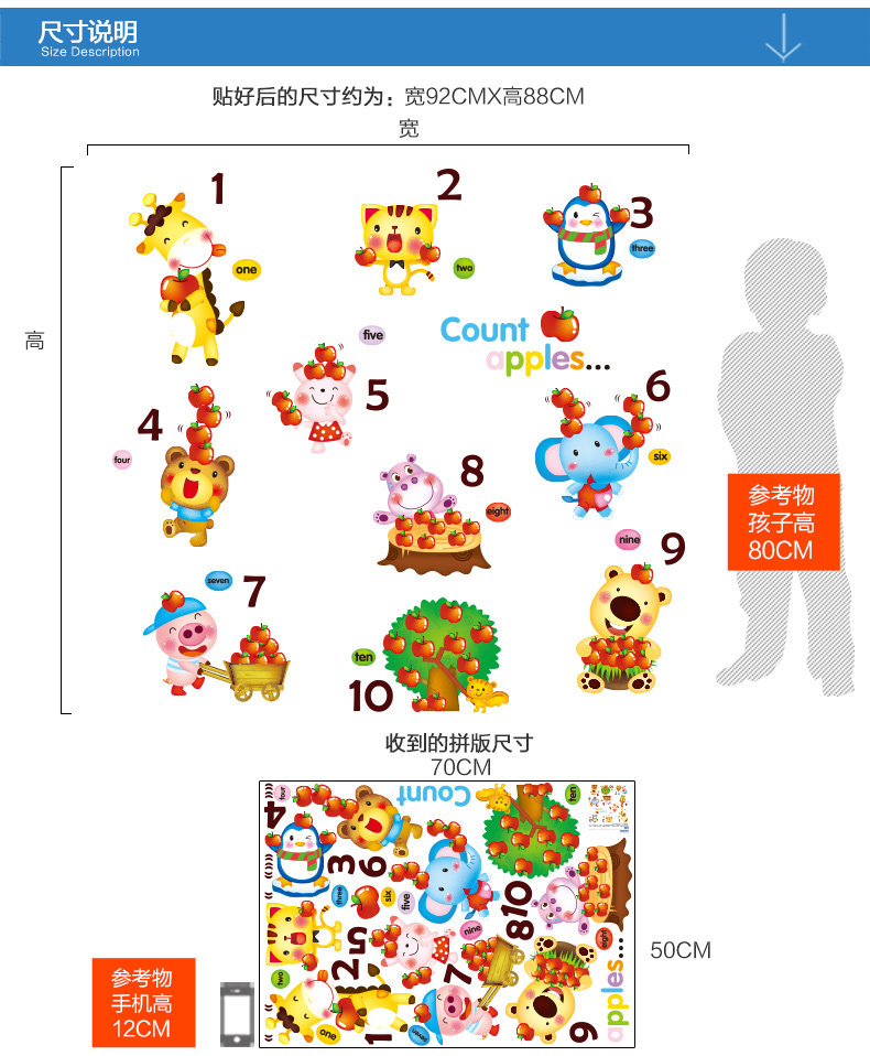 Material: environmental protection PVC, the back with plastic, removable