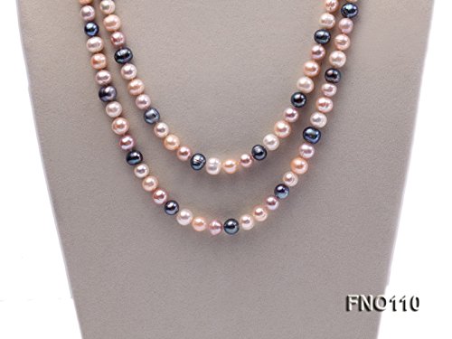 This is a brand new 60" inches strand of black,white pink purple genuine round pearls. The pearls measure 9-10mm of good quality, excellent luster and smooth surface.