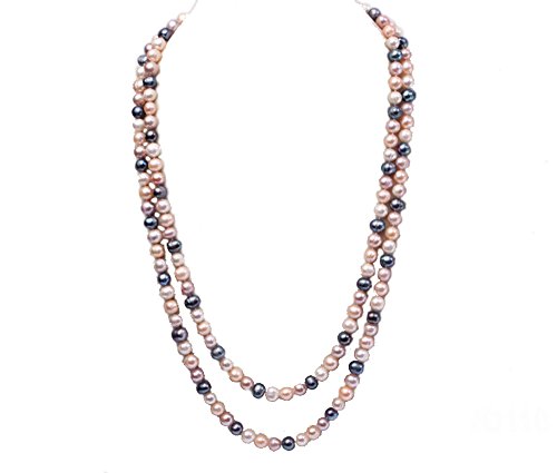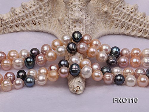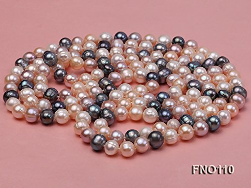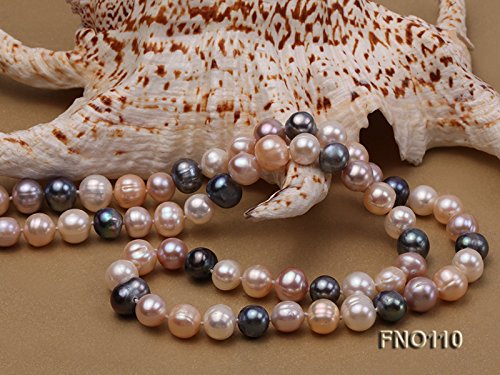 Description *This is a brand new 60" inches strand of black,white pink purple genuine round pearls. The pearls measure 9-10mm of good quality, excellent luster and smooth surface.