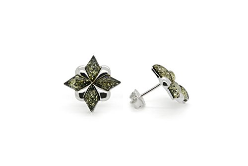 - Sterling silver stud earrings north star with genuine natural Baltic amber are made using only authentic materials. Each earrings set is produced with precision keeping the highest possible quality.