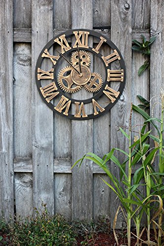 -. Feature : ATTRACTIVE RETRO STYLE: Industrial handmade big 3D gear (Cannot Move) decorative design, great indoor&outdoor decor for metallic rustic look and feeling. / HIGH QUALITY: Made of environmentally friendly wood with no second hand, hand painted vintage color. / PRECISE ULTRA-QUIET MOVEMENTS: Taiwan Sangtai 12888 Scanning Quartz Movement, NO annoying ticking, promise your sleep quality. / LARGE SIZE: Big dial diameter, best for living room, dining room, kitchen, office, bar, pub, restaurant, coffee house decoration etc. / BATTERY USUAGE: recommended a AA ordinary Carbon Zinc or Heavy Duty battery (NOT Included), exclude Alkaline battery.