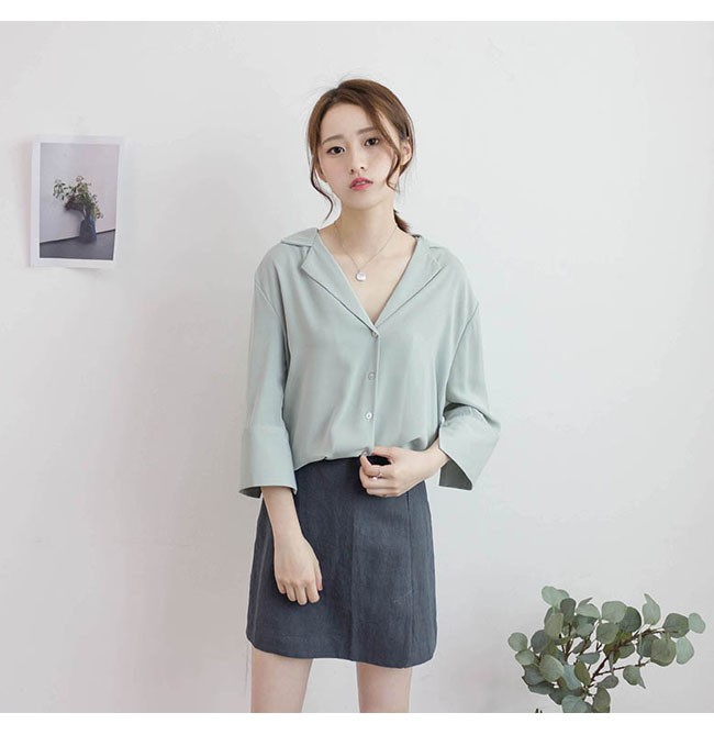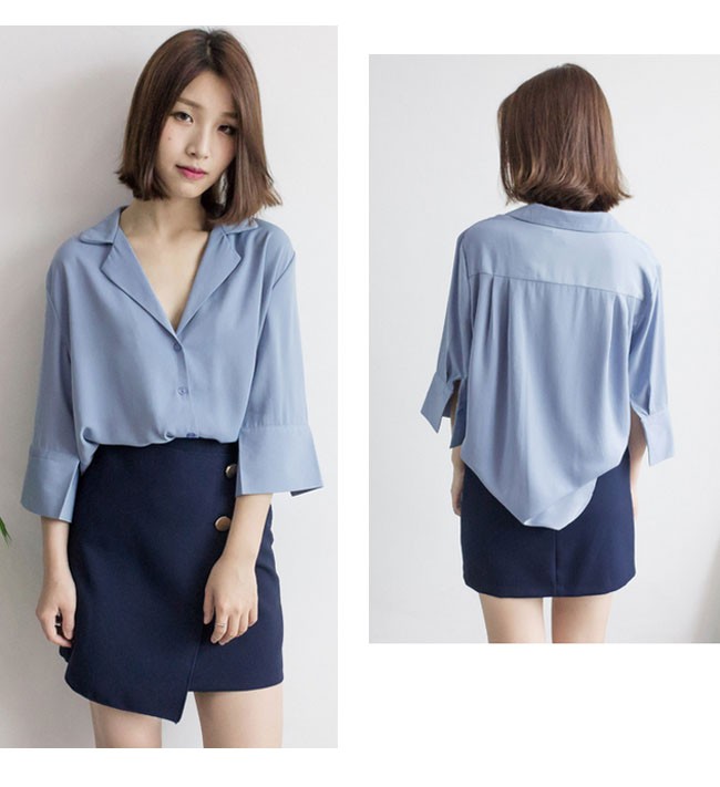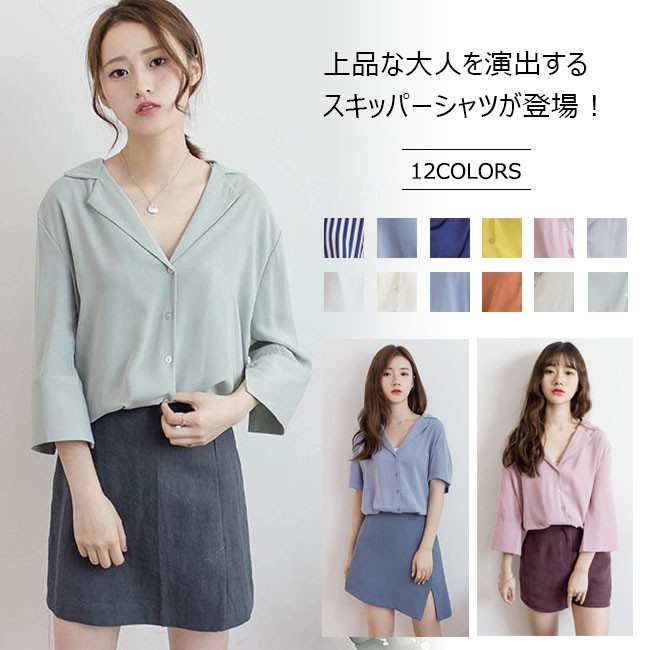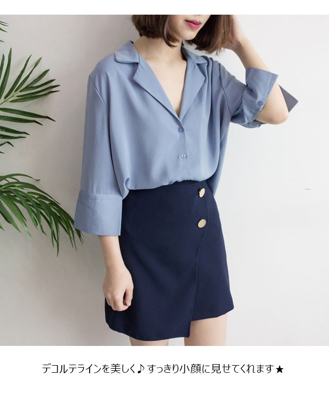 | 商品名 | シフォンシャツ 2wayシャツ シフォンブラウス スキッパー レディース Vネック 肩かけ 七分袖 ロールアップ とろみ 秋新作 |