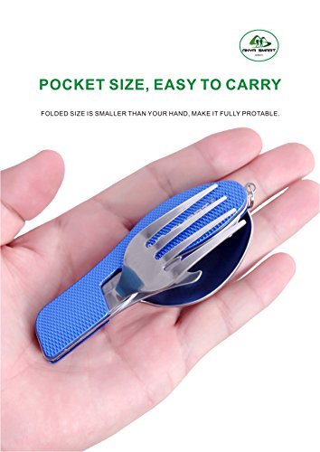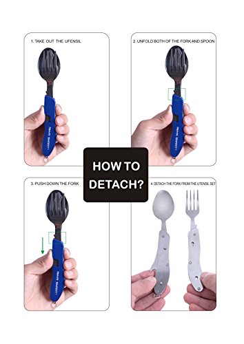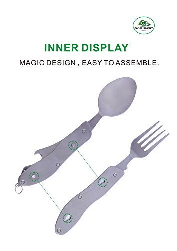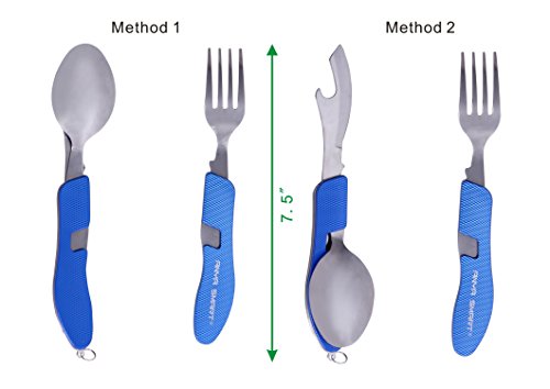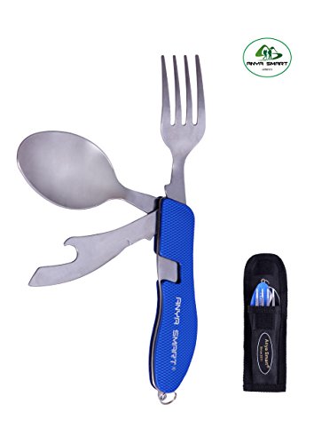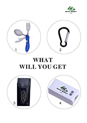 Anya Smart ® 4 IN 1 Features camping utensils set-this flatware set include Knife, Fork, Spoon and Can/Bottle opener, 1 set 4 functions, all –in-one utility,you can use the fork and knife at the same time, never worry about your utensil anytime any place,it is prefect suitable for campling,picnic,hiking,traving and other outdoor activeities for eating, no matter if you are home or outdoor activeities,this is a must have product.