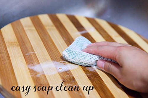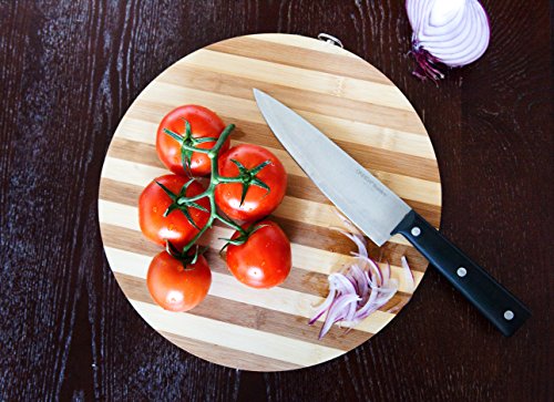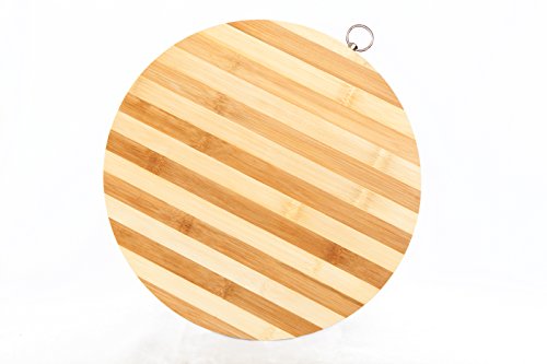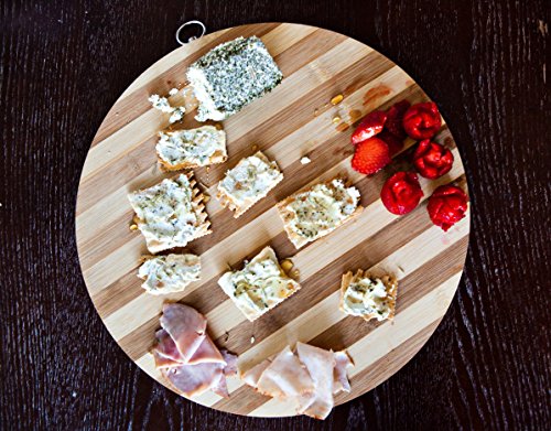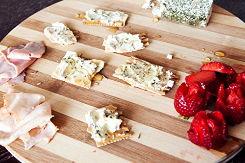 Stylish Round Bamboo Cutting Board and Serving Tray. Turn any food you serve into a classy act. Beautiful and unique striped wood design.